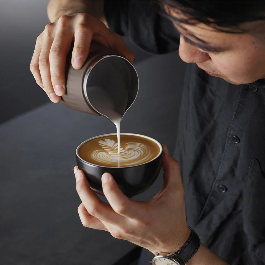 Refine your latte art skills with a handleless design and heat-resistant silicone sleeve. Featuring a precision pro spout and an angled opening, this jug ensures smooth milk steaming and pouring for velvety microfoam.
