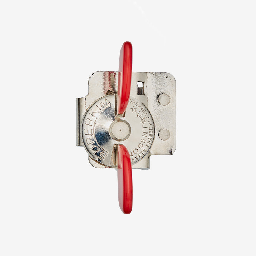 The Nogent Super-Kim Can Opener Red is a must-have kitchen essential! Many experts agree its sharp-knife opening principle is unbeatable, and the chromed steel and nickel construction guarantee long-lasting protection from corrosion. The hardened steel can opener easily opens boxes of all shapes and sizes, and its crimping feature ensures a safe, smooth opening. Comfort comes from its plasticized butterfly handle, while portability and easy storage are ensured by its convenient, compact design--perfect for picnics, camping, and motorhomes. To use, simply place the knife opener on the box edge, hold it in place with one hand, and turn the butterfly clockwise. Both right- and left-handed users will find it easy and effortless!
