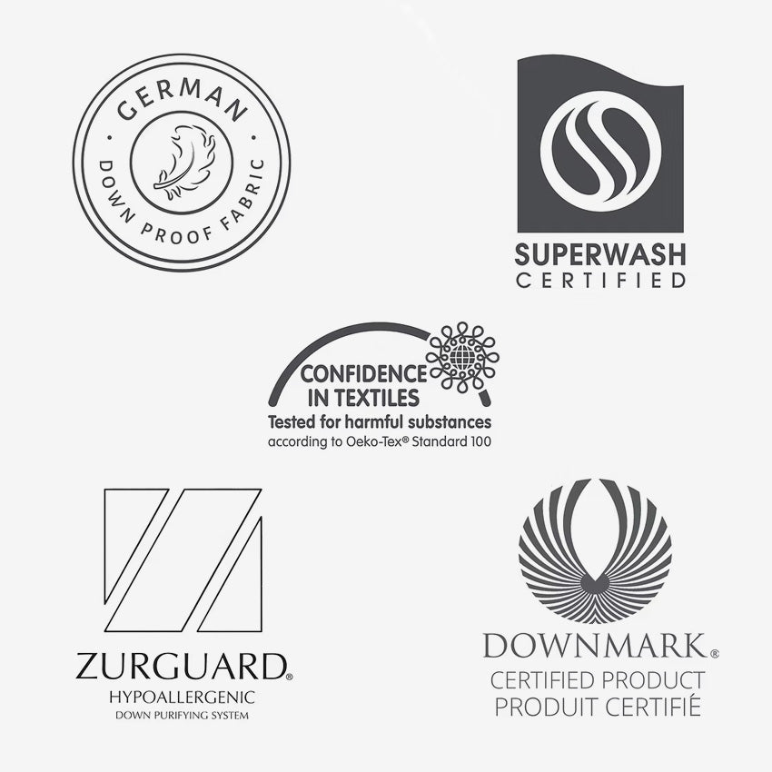 • Down Specifications: 600 loft, White Goose Down, Zurguard® Certified Hypoallergenic, Certified SUPERWASH™ for machine washing