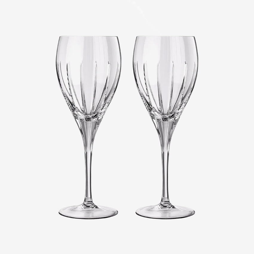 When hosting a festive soirée or spending a night in, you want to make sure you're treating yourself and your guests with luxury and this Christofle Iriana Crystal Water Glass is the perfect glass to create a lovely dinner experience. This set of 2 crystal cut glasses can be used for a multitude of drinks. This collection is designed to showcase the beauty in simplicity and with its stunning vertical cut pattern, it is simply a beautiful piece to add to your serveware.