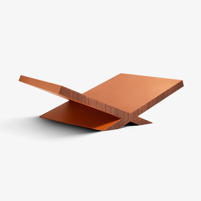 The Culture Bookstand captures refined simplicity with a touch of sophistication. Made from premium walnut wood and wrapped in textured pebbled leather, its striking angles and tactile finish draw the eye. Designed to tilt forward gently, it presents your book perfectly for easy viewing.
