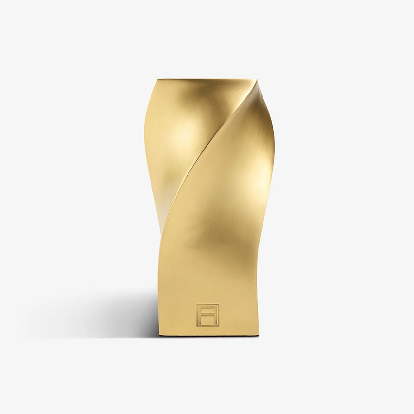 The Twist Bookends by Prosper Assouline are crafted to captivate from every viewpoint. Featuring a modern take on the classic plinth form, their sleek curves and polished surfaces redefine traditional design. Offered in brushed brass or walnut wood, these bookends make a striking addition to elevate any bookshelf.