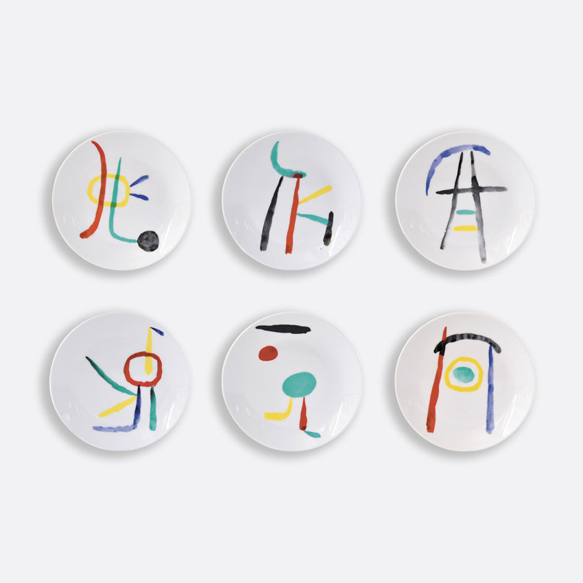 Bernardaud | Joan Miro - A Tout Epreuve Assorted Bread & Butter Plates Set of 6 D: 5.5 in