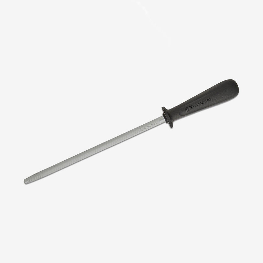 The Swiss Classic 10" honing steel is ideal for maintaining the sharpness of all your Victorinox knives, made from durable, dishwasher-safe and lightweight steel composition in Switzerland. Longer than most, it suits nearly any knife in your collection. Unlike traditional sharpeners, this honing steel is used by professionals after every use to realign the blade’s edge, preserving optimal sharpness and performance.