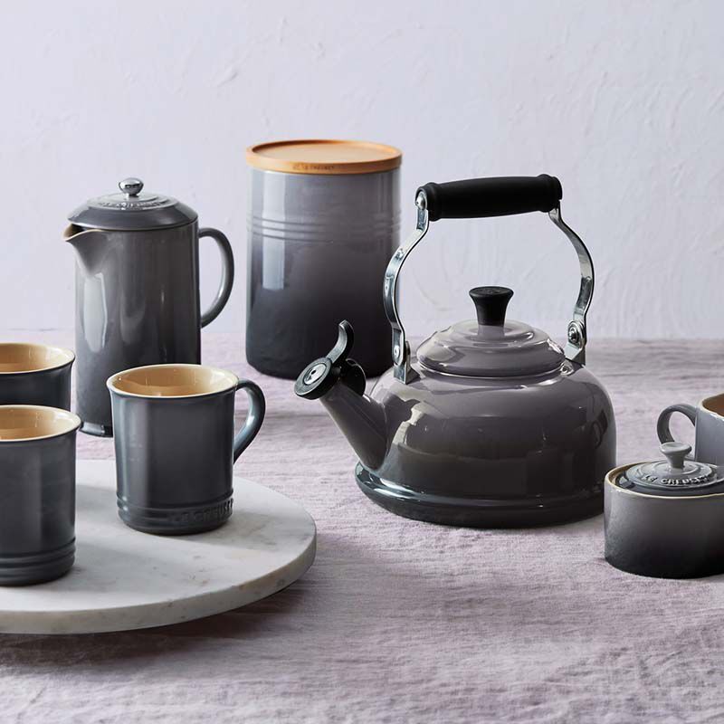 Prepare your favourite hot beverages or instant oatmeal with Le Creuset's Classic Whistling Kettle. Made out of enamelled cast iron, it’ll suit all heating sources. Its antique silhouette, heat-proof ergonomic handle and old-fashioned whistle alert make it the perfect addition to any kitchen.