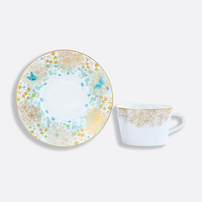 Since 1863 in Limoges, France, Bernardaud has made a statement with high-quality porcelain creations. This elegant tea saucer adds a whimsical touch to your daily tea, whether it's in the morning or afternoon. With a colourful design featuring butterflies and floral patterns, with thin edges to keep it hot, you and your guests can enjoy sipping tea to fully taste the aromas.
