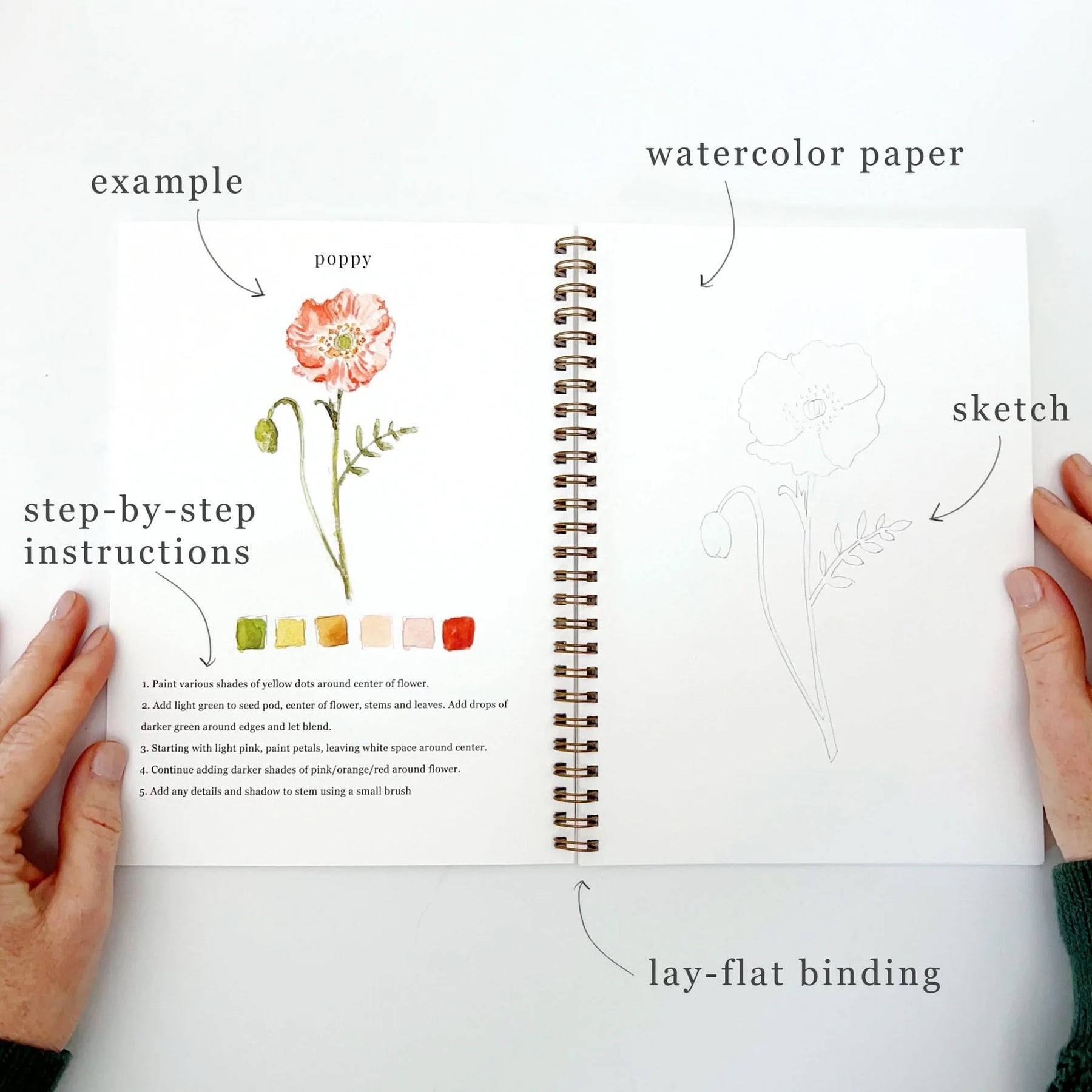 Although the idea for the watercolour workbooks started with kids in mind, all kinds of people started to enjoy these watercolour workbooks! With simple outlined sketches to paint with watercolours just like with crayons in a colouring book, this book is perfect for artists who need something less intimidating than a blank page to start. The book includes 12 beginner friendly sketches, simple step-by-step instructions, and a lay flat spiral binding for easy painting.