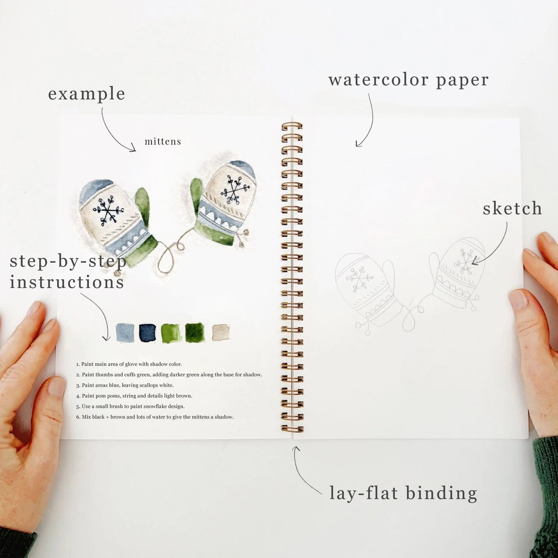 The Winter watercolour workbook provides just the right amount of instructions and relaxing fun to encourage you or the kids to pick up a paintbrush to start watercolouring your favourite winter scenes today!
