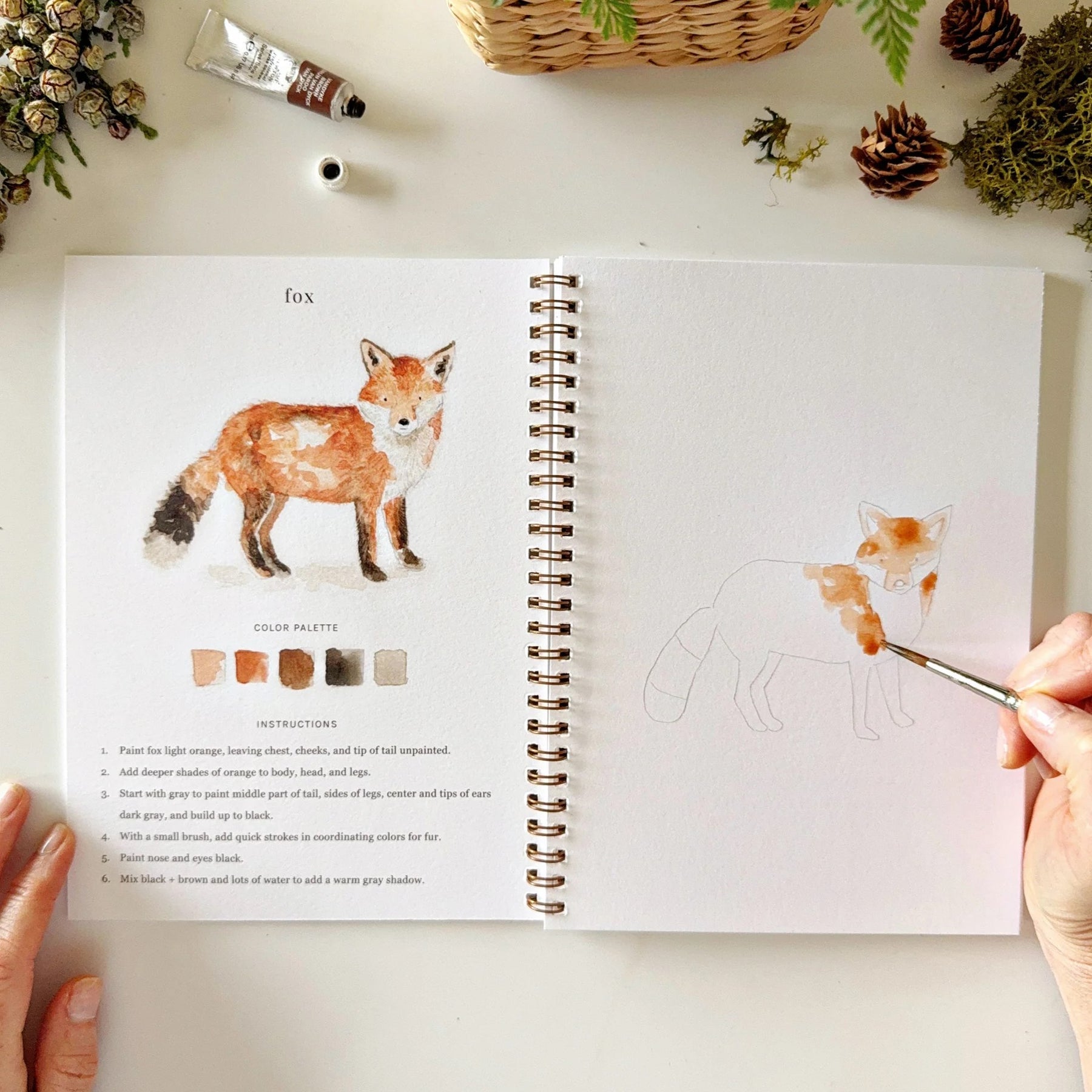 The Woodland watercolour workbook provides just the right amount of instructions and relaxing fun to encourage you or the kids to pick up a paintbrush to start watercolouring your favourite woodland scenes today!