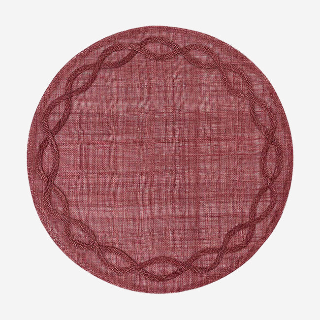 Inspired by the famous Tuileries garden in Paris, this beautiful hand-woven abaca placemat features an embroidered edge in a chain-like pattern. This stunning mulberry hue brings a charming and colourful addition to your dining table, perfect for everyday use or for special occasions.