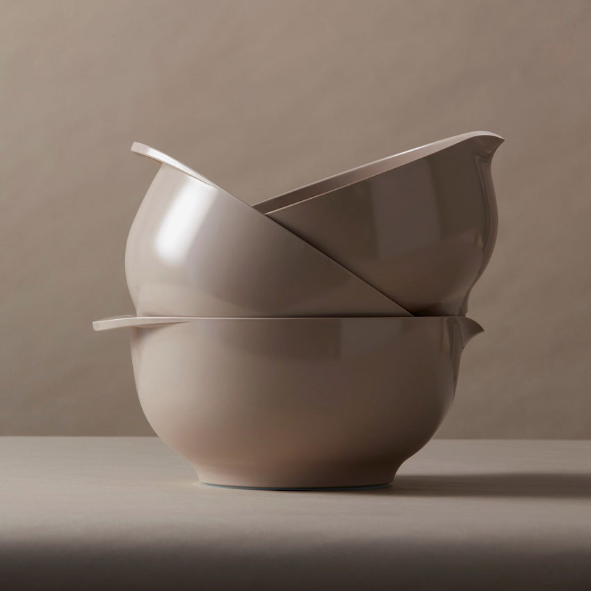 Rosti Margrethe melamine mixing bowls boast attractive designs and practical uses. Available in multiple sizes and colours, these bowls are perfect for any task in the kitchen- from cooking to baking. Mix and match sizes and colours to match your kitchen aesthetic. Additionally, a handle on one end and a tapered lip on the other make it easier to hold and pour, making mess free kitchen tasks simple.
