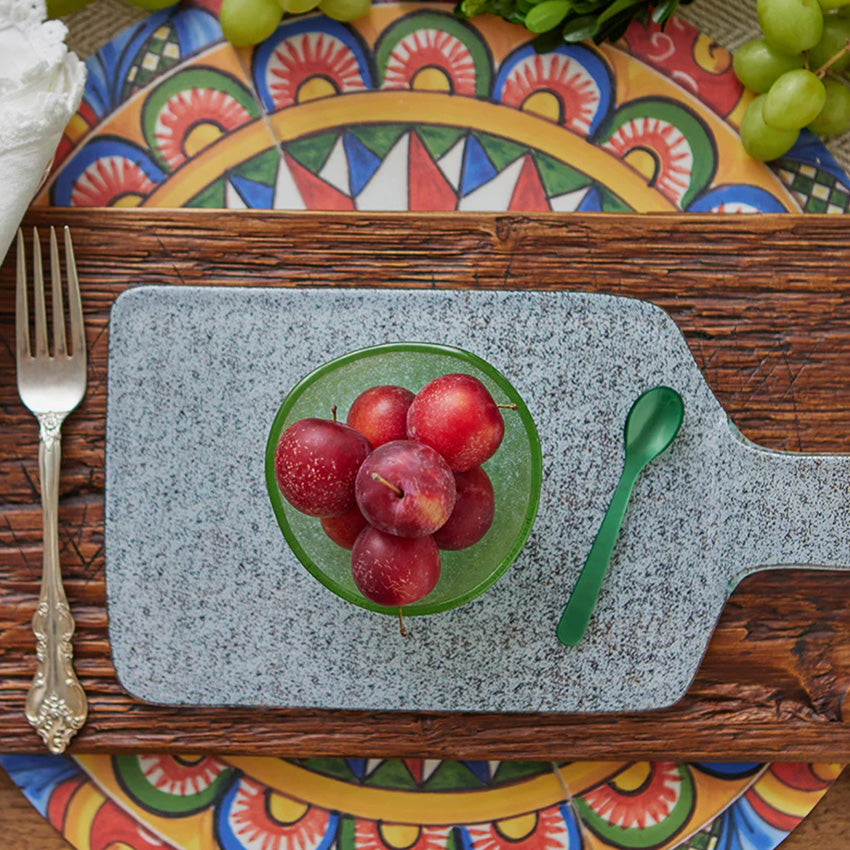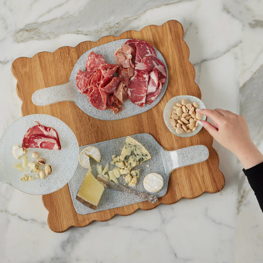 These platters showcase a unique handle and ample surface area, perfect for layering on a charcuterie board to enhance texture, add vibrant colour, and simplify serving. Crafted from easy-to-clean glass, they are perfect for daily use and elegant specialty presentations.