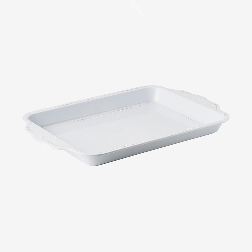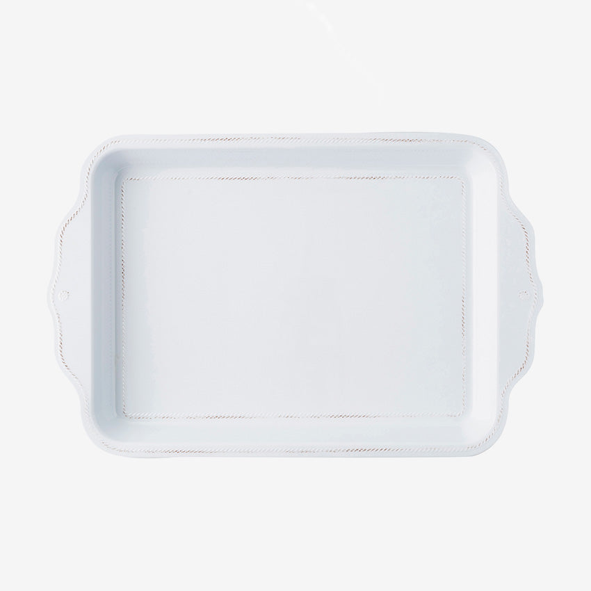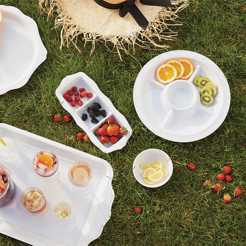 From the Al Fresco Collection - a perfect blend of durability and style. The iconic Berry & Thread design takes on a playful twist with melamine dinnerware, featuring classic patterns inspired by Bohemian glassware. This generously sized tray will make it easy to transport your delicious homemade food and grilled meat to your table.