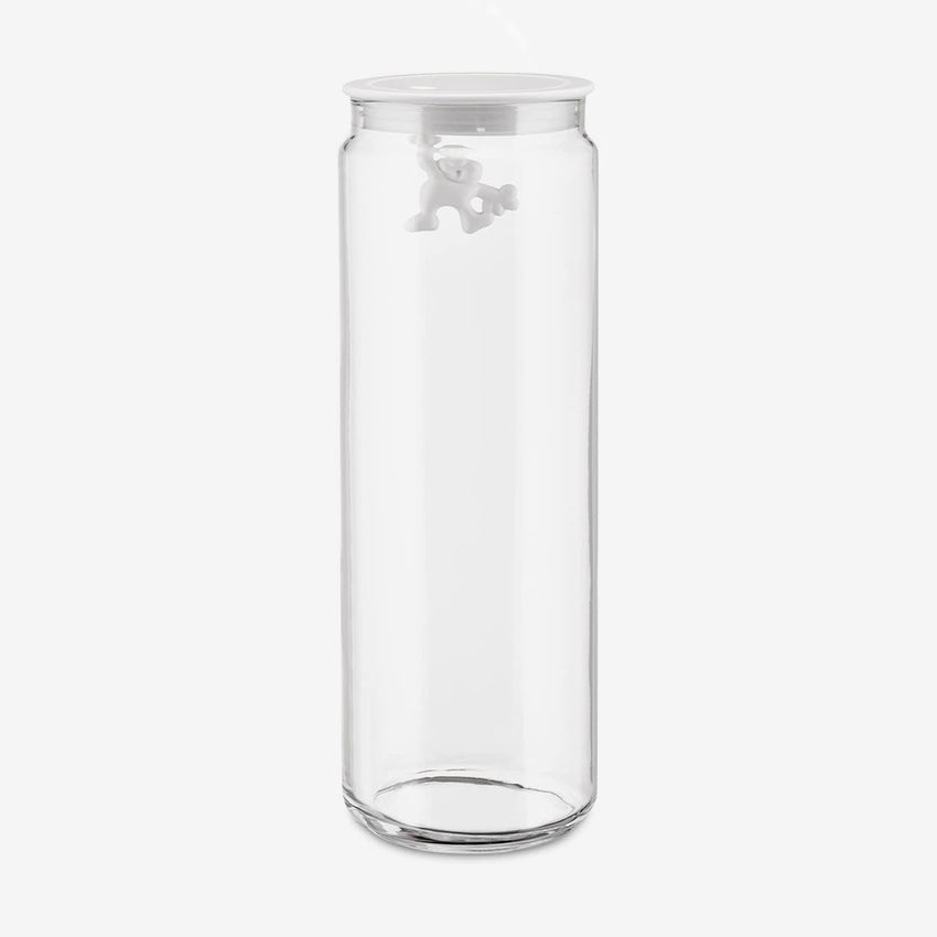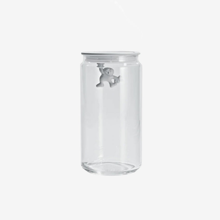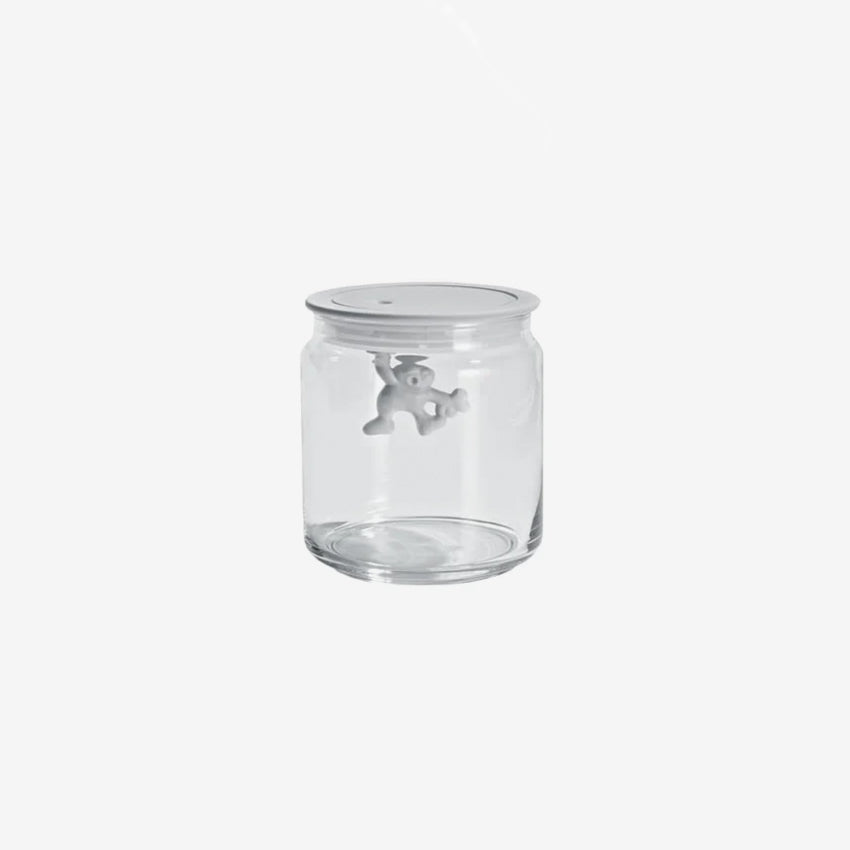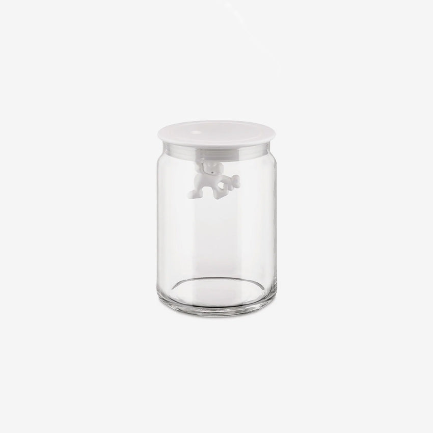 Maximize your kitchen storage with this playful Glass jar featuring a hermetic lid and a thermoplastic resin with a figurine of Gianni a little man holding on tight glass jar. From nuts and grains to sugar and flour, this jar is perfect for all your storage needs in a stylish and adorable way.