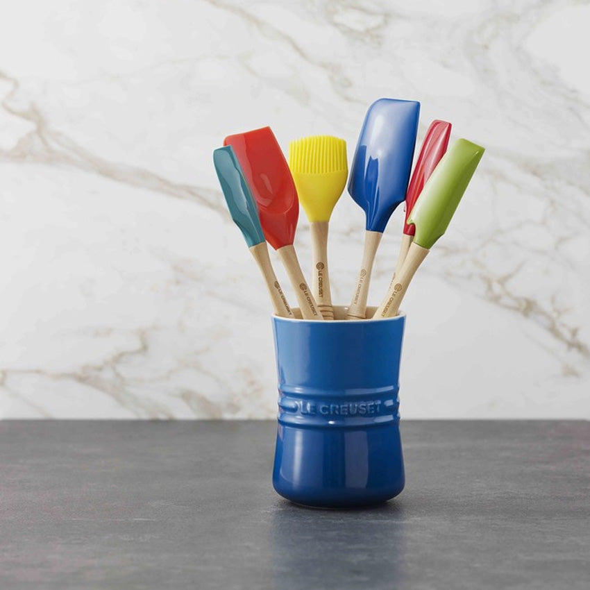 Let’s put an end to frantically rummaging through drawers for everyday kitchen utensils. Place and display your spatulas, spoons, tongs, whisks and ladles in this stoneware crock for a convenient and aesthetically pleasing solution to your cookware accessory disorder.