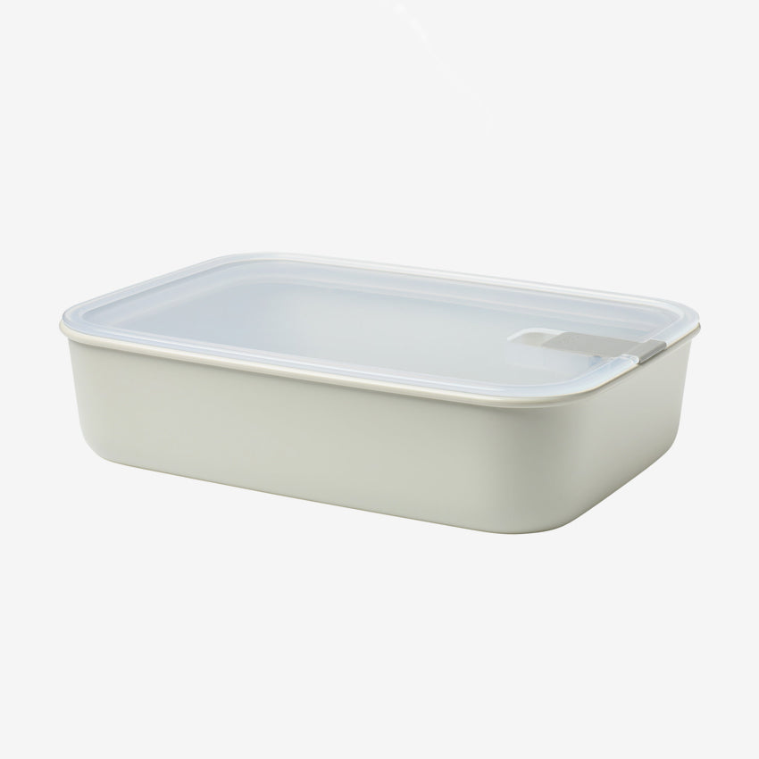 This Mepal Easyclip Rectangle Box dish is made of durable, heat-resistant glass, making it ideal for baking and reheating in the oven or microwave. Sealing the lid with one click gives you an airtight, leakproof box for storing leftovers. Its sleek design makes it easy to organise your refrigerator or freezer and the transparent lid and dish let you see the contents at a glance.