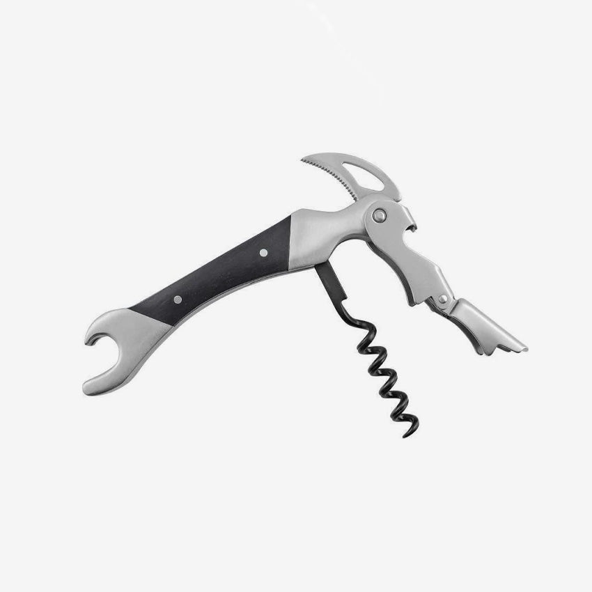 Never fuss with opening a corkscrew bottle again with the Swissmar 2-step corkscrew, black pakka wood! This beautiful Corkscrew opener has a serrated blade to take the foil off the bottle, and a 2-step head for smooth removal of natural and artificial cork stoppers. Open with ease and style when you're hosting your next gathering!