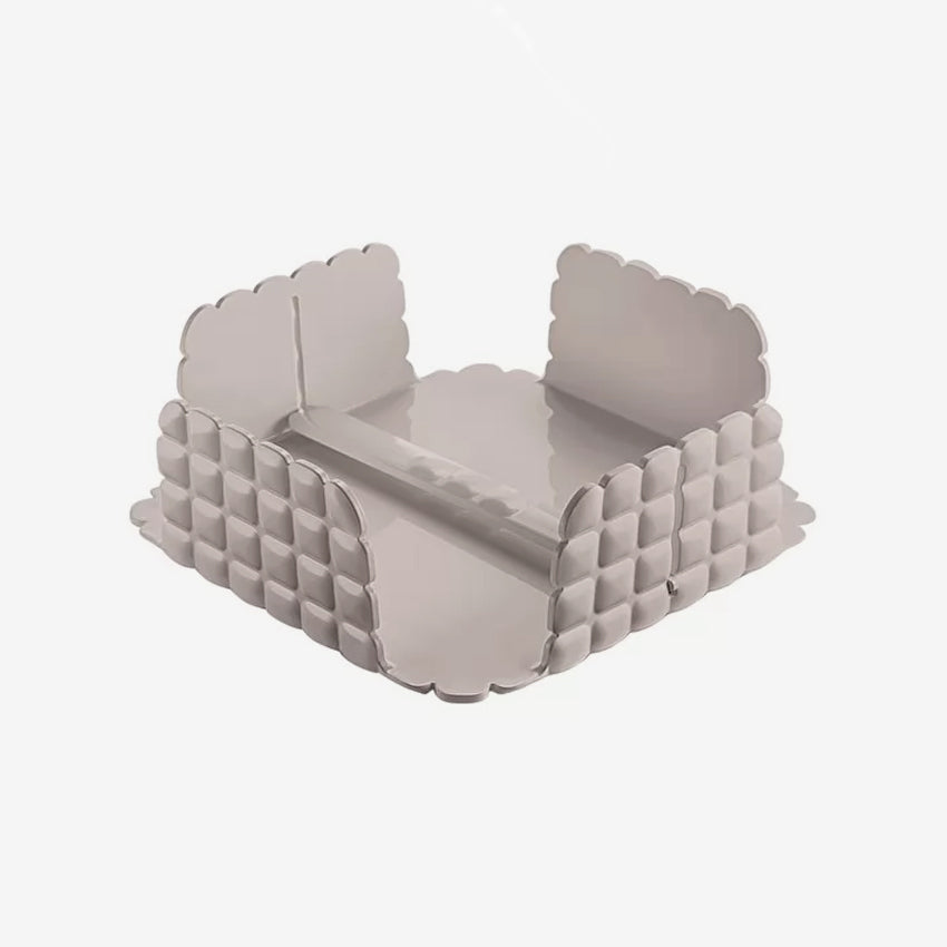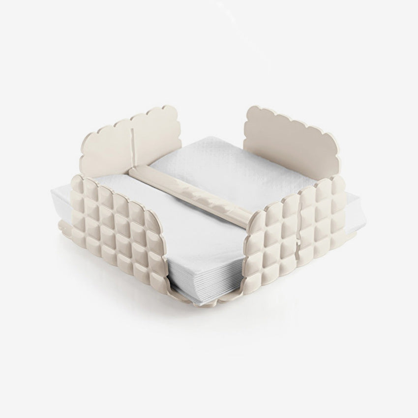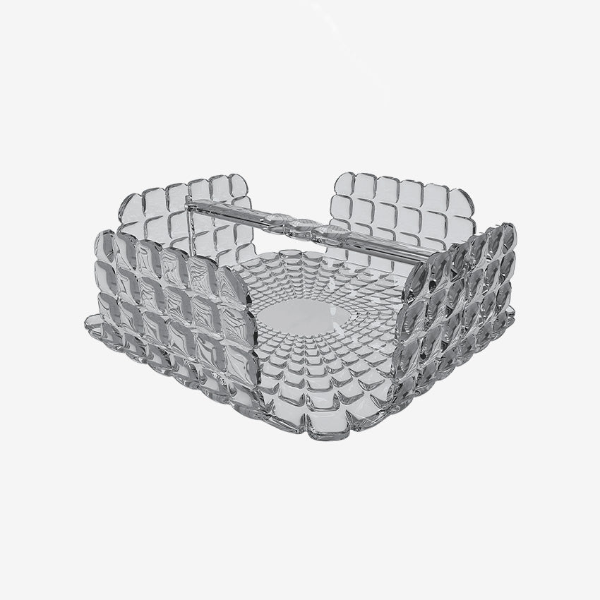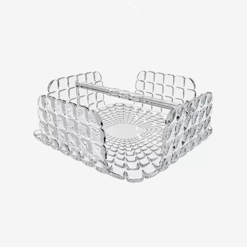 This napkin holder features a horizontal rack with a removable retainer bar for easy cleaning. The elegant and compact design boasts the trademark Tiffany relief decoration, showcasing attention to detail.