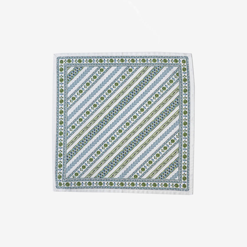 This beautiful Seville-inspired cotton sateen napkin brings an elegant charm to any table setting! Drawing inspiration from the city's intricate, hand-painted tiles and features a playful stripe pattern in the calm and cool colours of the Spanish countryside.