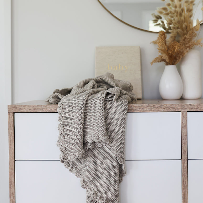 The Alimrose Mini Moss Stitch Blanket offers a unique visual interest and an inviting softness. An ideal present for new parents, this cozy knit blanket is designed to ensure maximum comfort and warmth for your child. This simple, sophisticated piece is sure to complement any home and add a subtle touch of colour. Expertly crafted with great attention to detail, this blanket is proudly created by a female-led, family-owned Australian business in the Philippines.