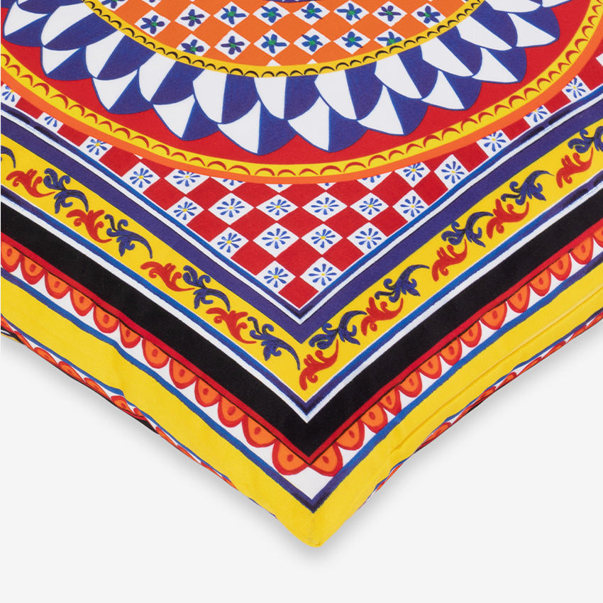 This Small Carretto Duchess Cotton Cushion by Dolce&Gabbana Casa, with a foulard print from the archives, echoes the Carretto Sicilian: a folkloric element from a place of traditions, artistic craftsmanship, landscapes and unique colors which have always been at the heart of Dolce&Gabbana’s aesthetics.