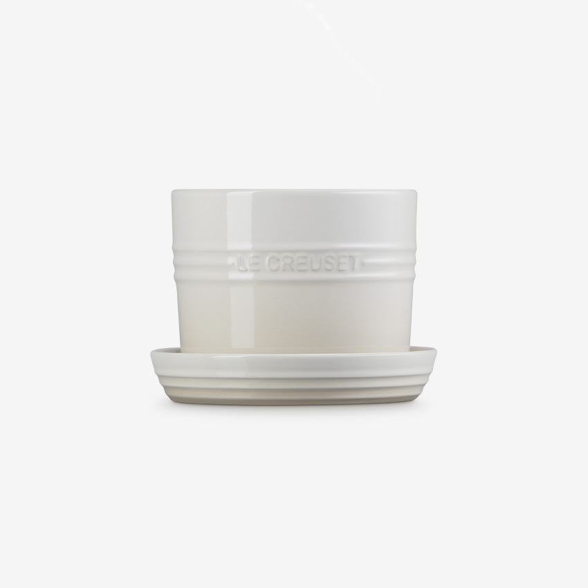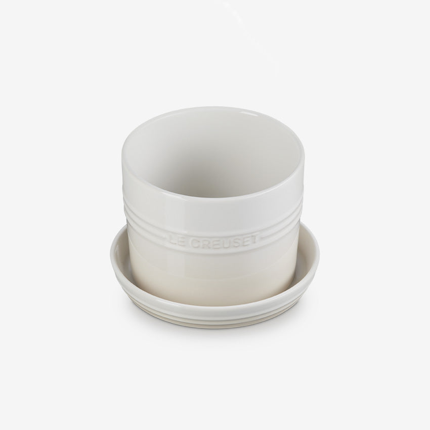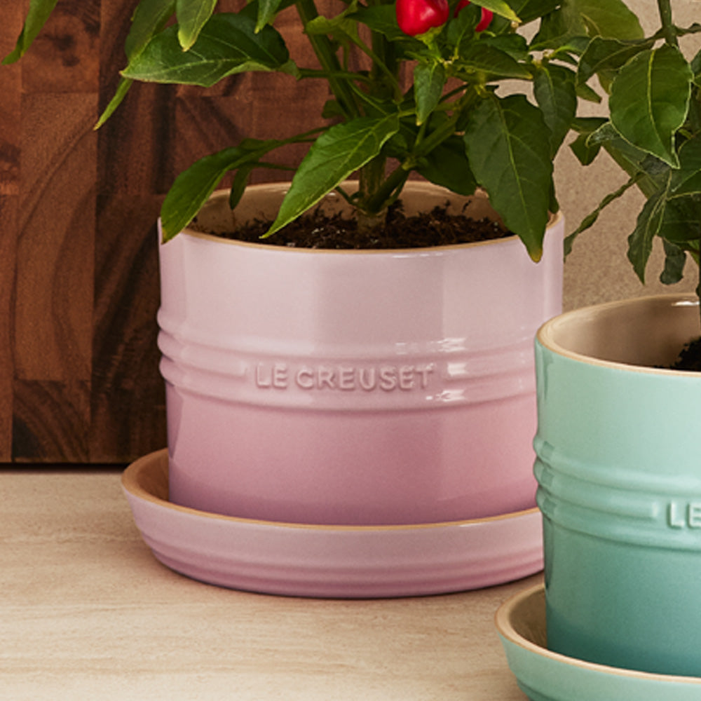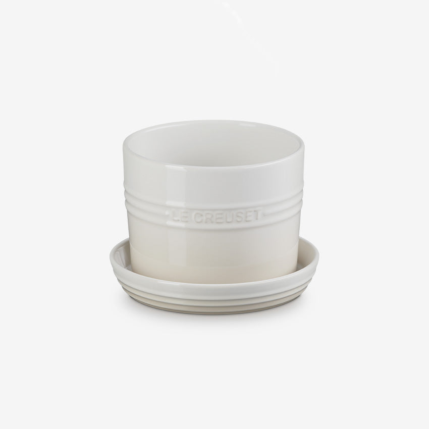 Expertly crafted with premium stoneware and designed to accommodate herbs, this Le Creuset planter is ideal for cultivating fresh basil or any other herbs to add flavour to your cooking! The accompanying tray effectively collects excess water and maintains optimal moisture levels, promoting the strong growth of your herbs. With a resilient glaze that is applied by hand, it ensures durability against chips, cracks, and stains. Start your own home garden with these charming planters today.
