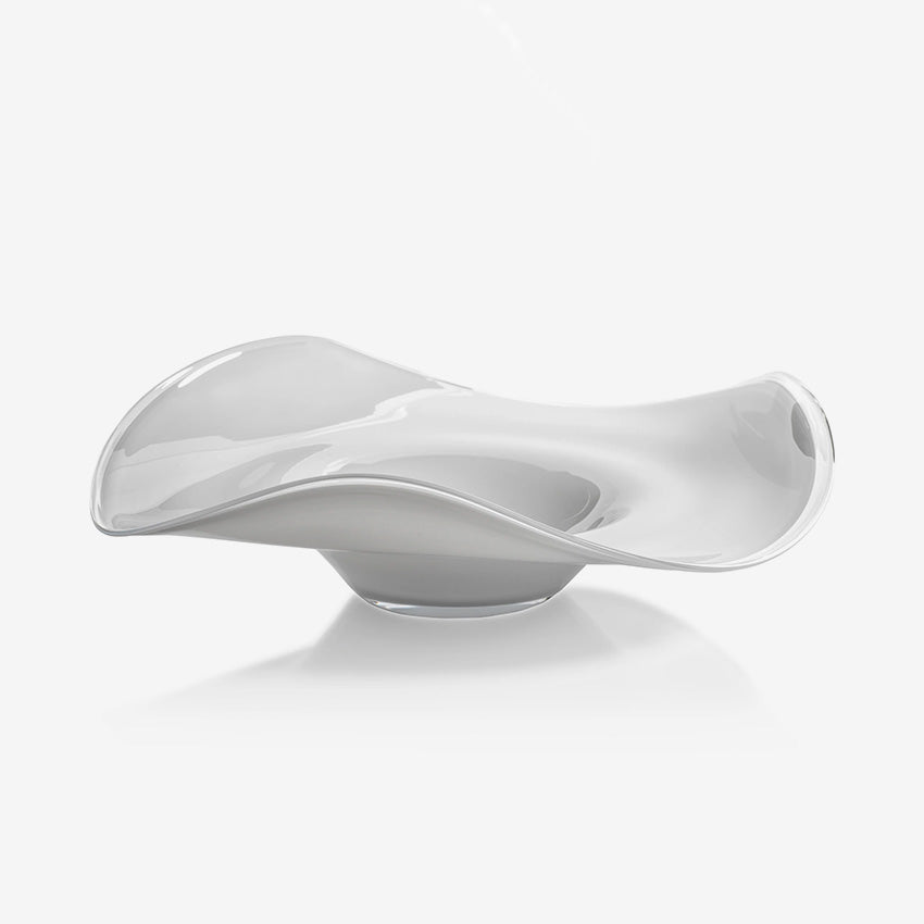 Meet the Lagoon Scissor Cut Wave Bowl in opal white, a stunning addition that enhances your home’s decor. Its contemporary design fits effortlessly into any elegant space. This opal white bowl, meticulously handcrafted from hand-blown glass, offers unmatched sophistication. An exquisite piece, it’s perfect for displaying decorative items and serves as a striking centerpiece on your table.