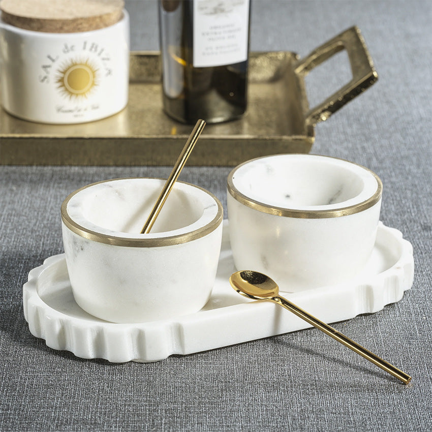 Zodax | Marble Condiment Set - 2 Bowls, 2 Spoons and 1 Tray