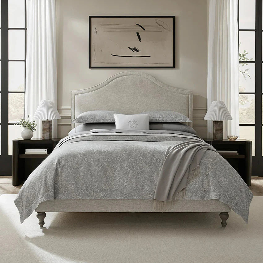 Le jacquard est un tissage texturé qui crée des motifs complexes directement dans le tissu, sans être imprimé ni brodé. C'est une option décorative qui ajoute une touche luxueuse à votre literie. Grâce à son procédé de tissage complexe, le jacquard est généralement plus épais et plus structuré que la percale ou la satinette. Il est donc idéal pour les personnes qui ont froid au sommeil, car il offre plus de chaleur. Cependant, en raison de son poids plus élevé, il nécessite plus d'entretien pour conserver son design complexe et sa douceur au fil du temps.