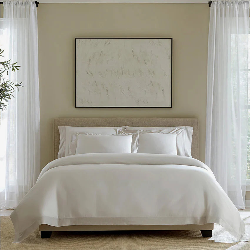 Pendant les mois chauds, la respirabilité est essentielle pour rester au frais et à l'aise. La percale est donc la meilleure option pour l'été grâce à sa légèreté et à son excellente circulation de l'air. Son tissage empêche la chaleur de rester emprisonnée, tandis que le coton à fibres extra-longues renforce son effet rafraîchissant en conservant la douceur et la souplesse du tissu.