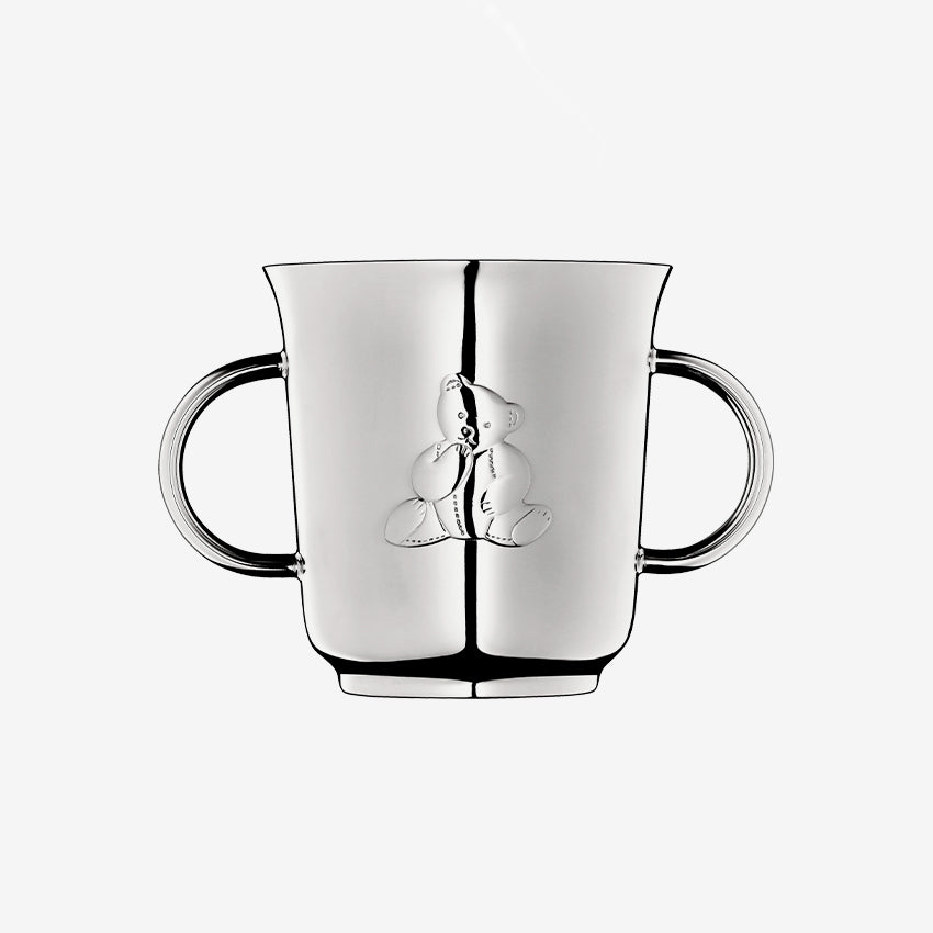 La tasse Christofle Charlie Bear Baby Cup avec anses est un cadeau idéal pour la douche de bébé, car elle est fabriquée en métal argenté et a le potentiel de durer à travers les générations. Bien que cette tasse puisse être utilisée à des fins décoratives, elle a été spécialement conçue pour les jeunes mains, avec des poignées souples sur les côtés pour une prise en main facile. La collection Charlie Bear ajoute une touche délicieuse à tous les objets, idéale pour les enfants qui adorent leurs peluches.