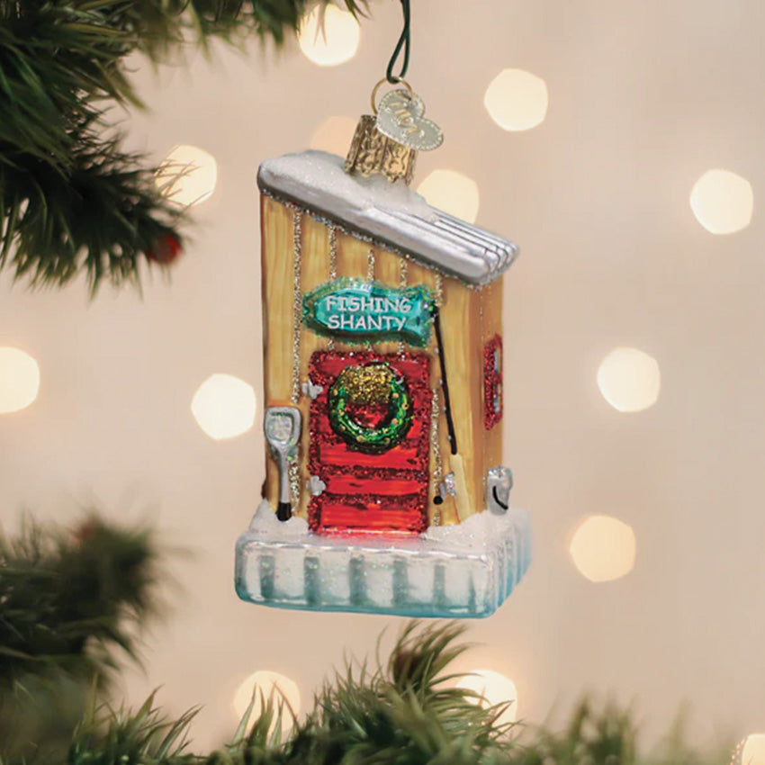 Old World Christmas | Blown Glass Ornament - Ice Fishing Shanty