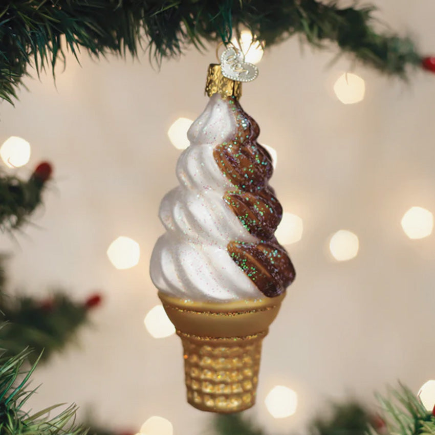 Old World Christmas | Blown Glass Ornament - Chocolate Swirl Soft Serve