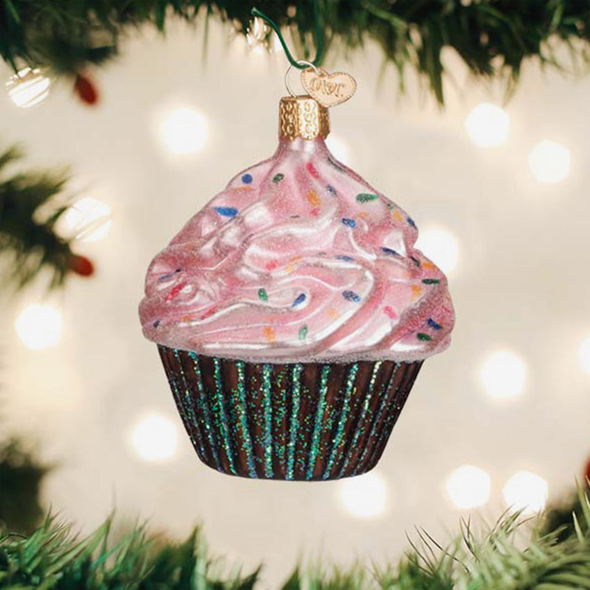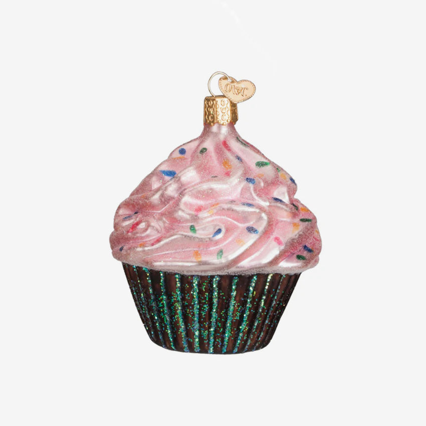Old World Christmas | Blown Glass Ornament - Pink Chocolate Cupcake