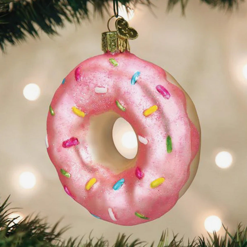 Old World Christmas | Blown Glass Ornament - Pink Sprinkles Donut