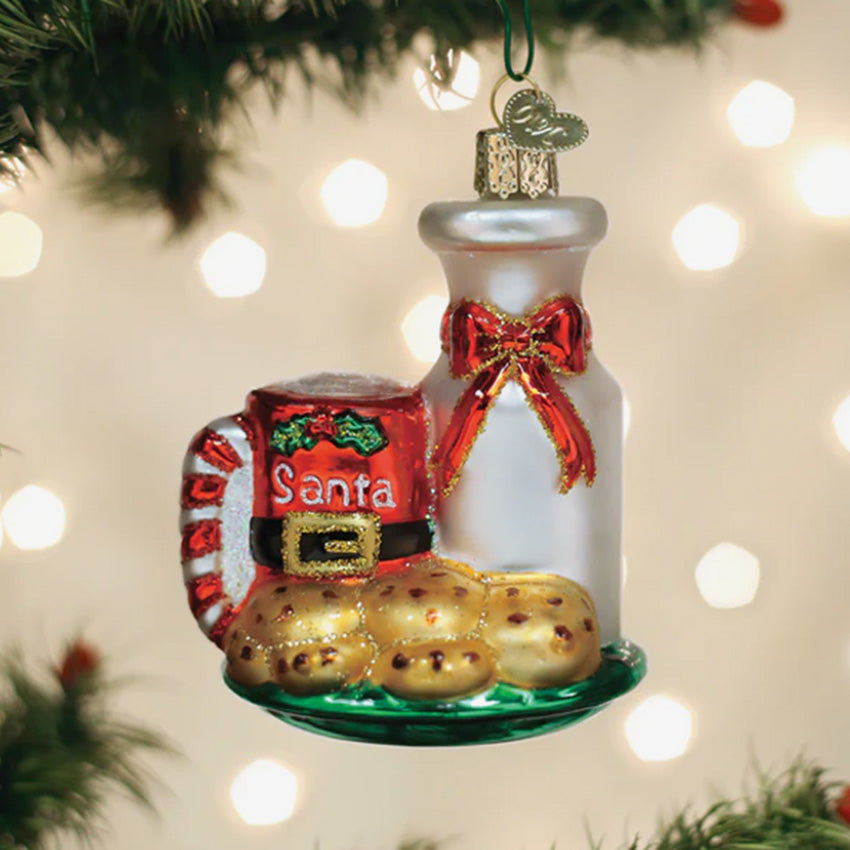 Old World Christmas | Blown Glass Ornament - Santa's Milk & Cookies