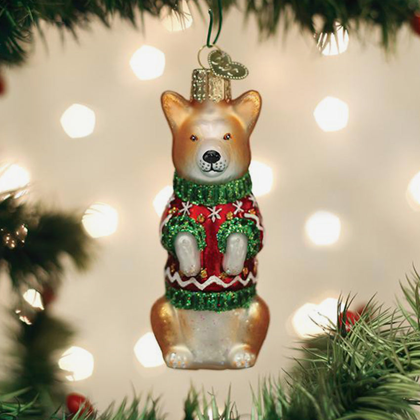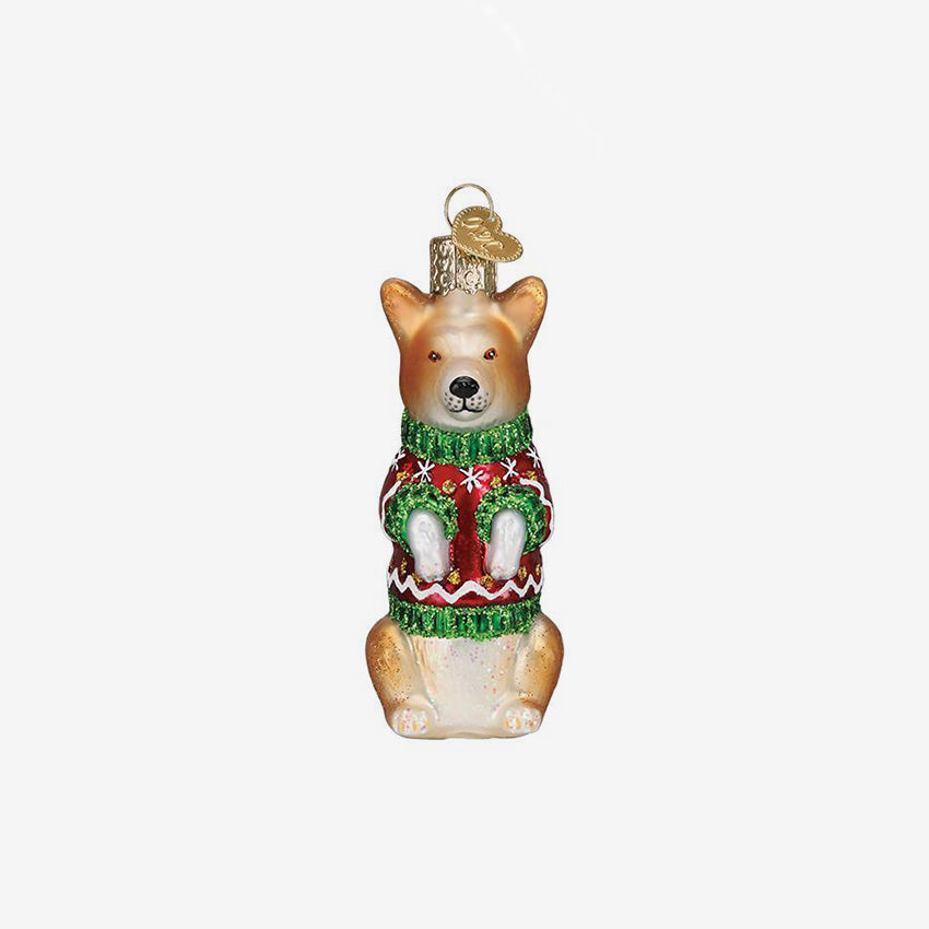 Old World Christmas | Blown Glass Ornament - Christmas Corgi