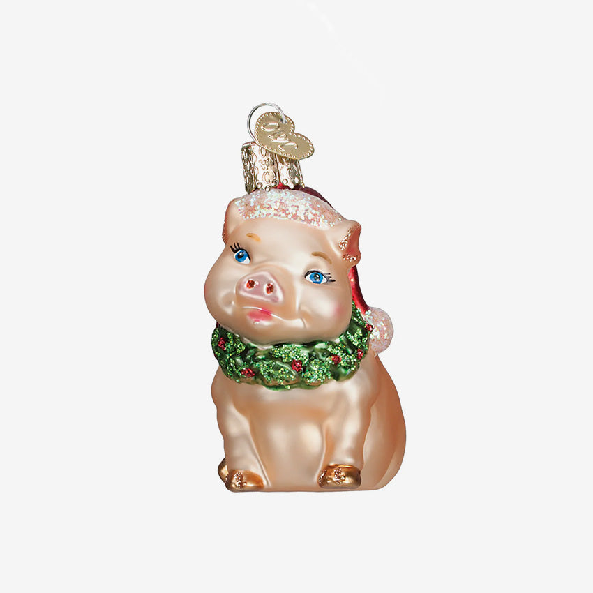 Old World Christmas | Blown Glass Ornament - Holly Pig