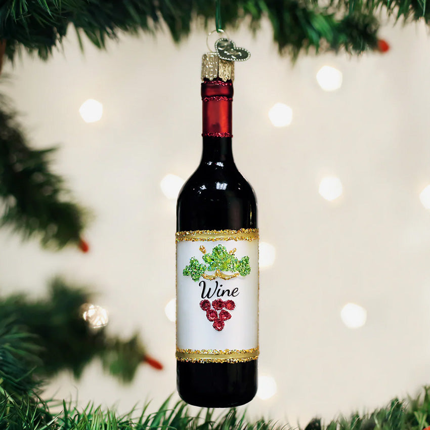 Old World Christmas | Blown Glass Ornament - Red Wine Bottle