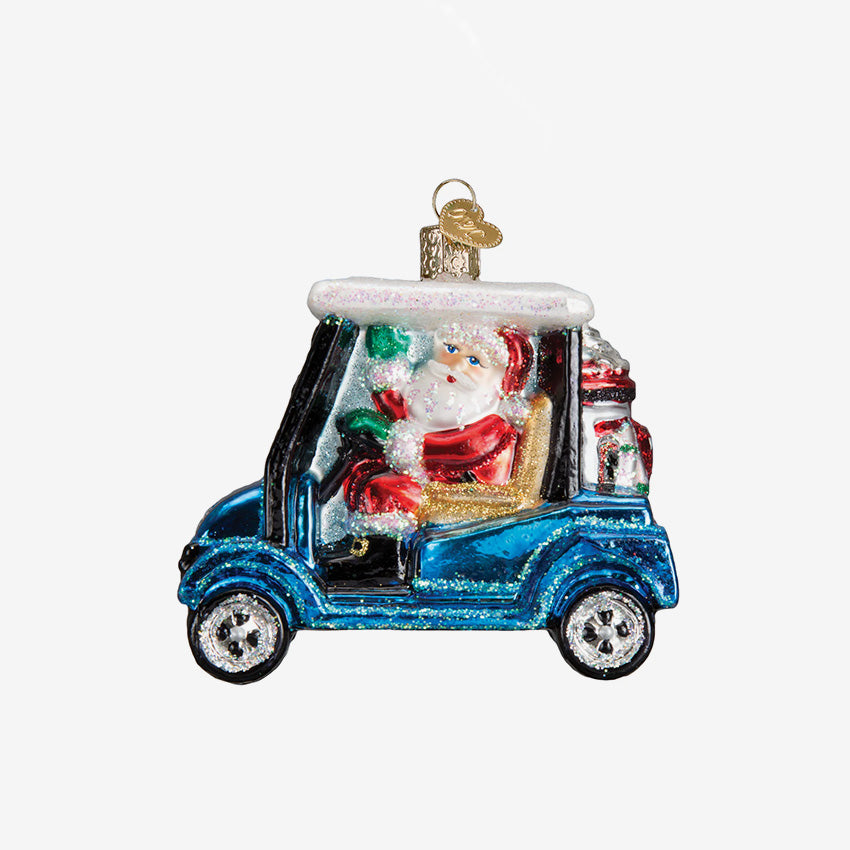 Old World Christmas | Blown Glass Ornament - Golf Cart Santa
