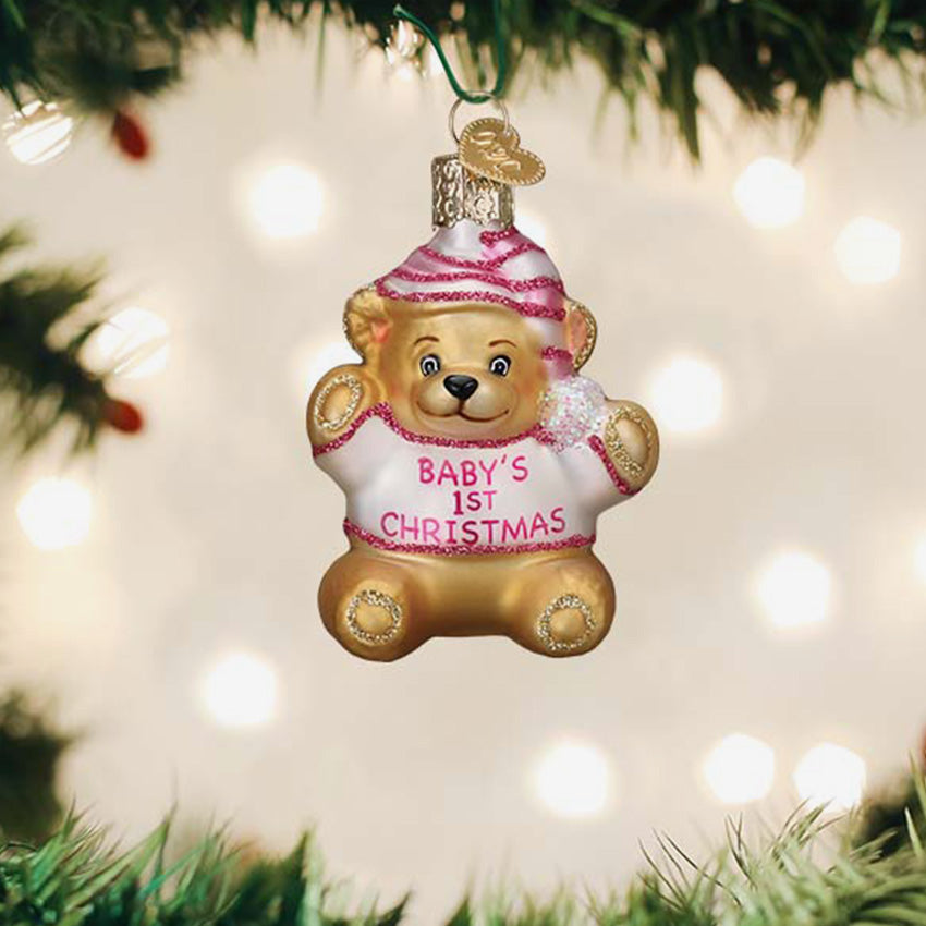 Old World Christmas | Blown Glass Ornament - Baby Girl's First Teddy Bear