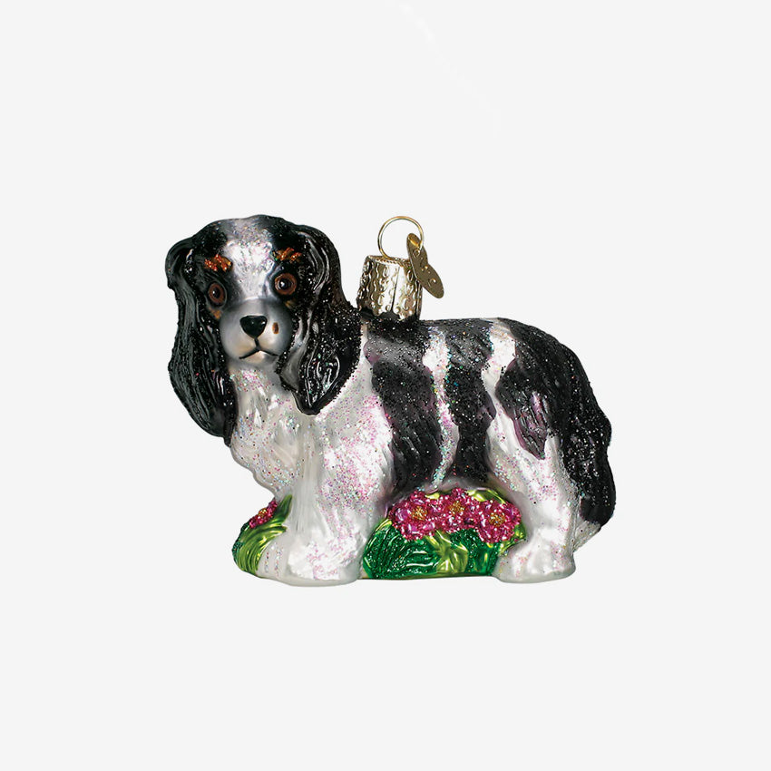 Old World Christmas | Blown Glass Ornament - Black & White King Charles Spani