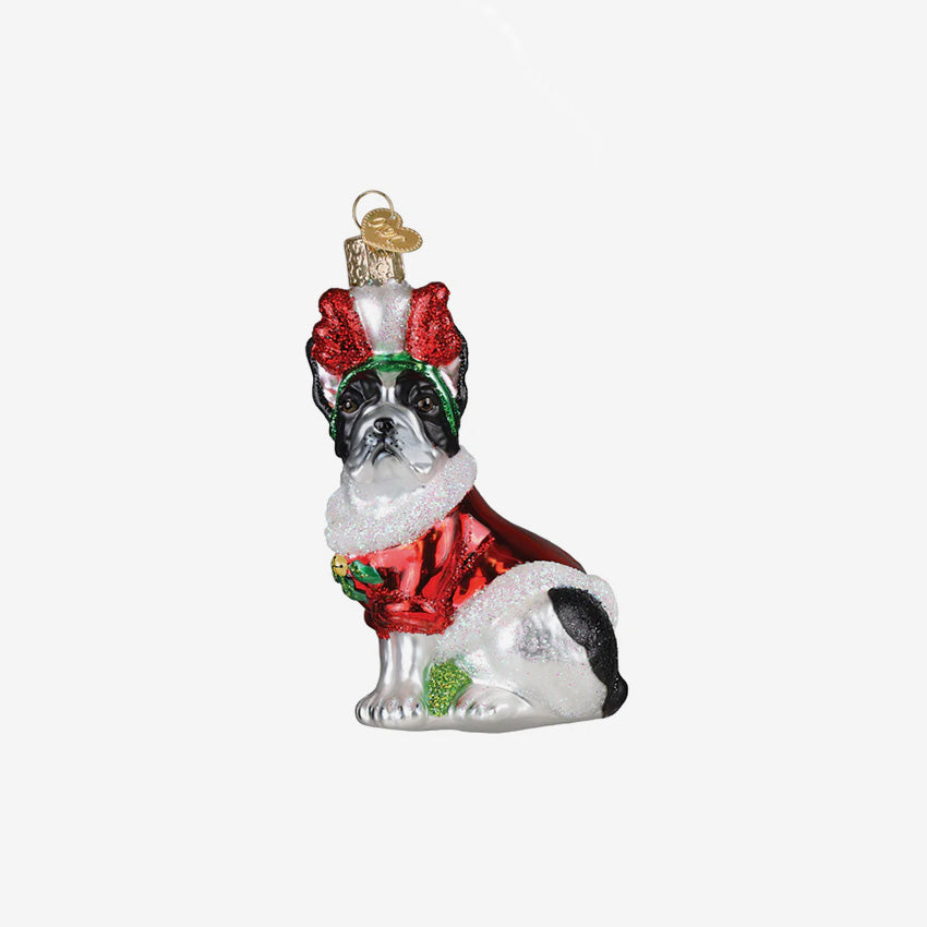 Old World Christmas | Blown Glass Ornament - Holiday French Bulldog