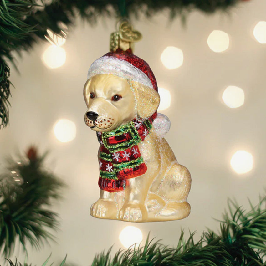 Old World Christmas | Blown Glass Ornament - Holiday Yellow Labrador Puppy