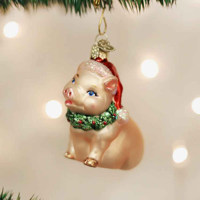 Old World Christmas | Blown Glass Ornament - Holly Pig