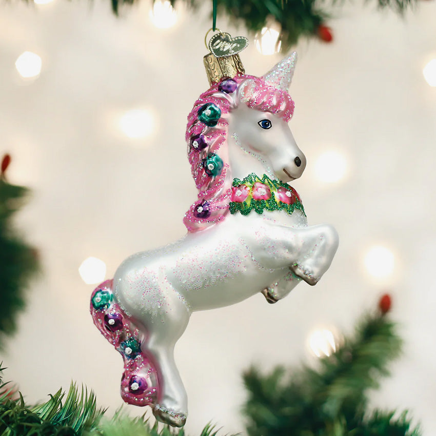 Old World Christmas | Blown Glass Ornament - Prancing Unicorn