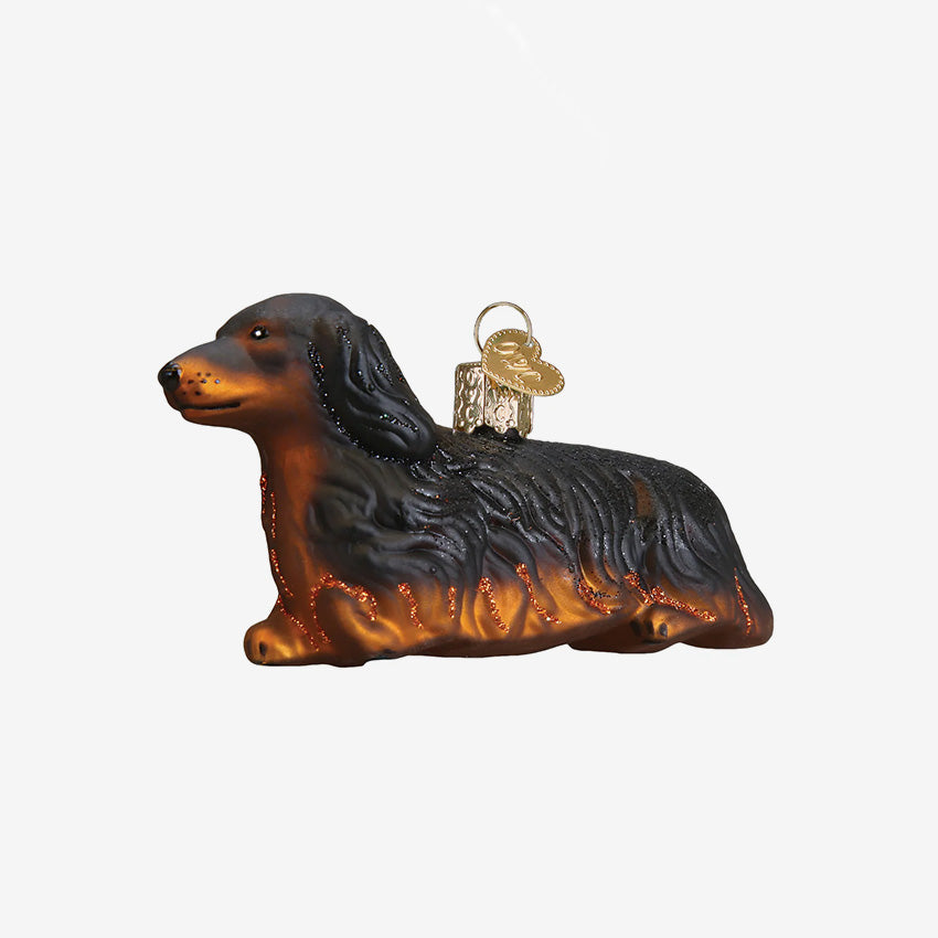 Old World Christmas | Blown Glass Ornament - Long-Haired Dachshund