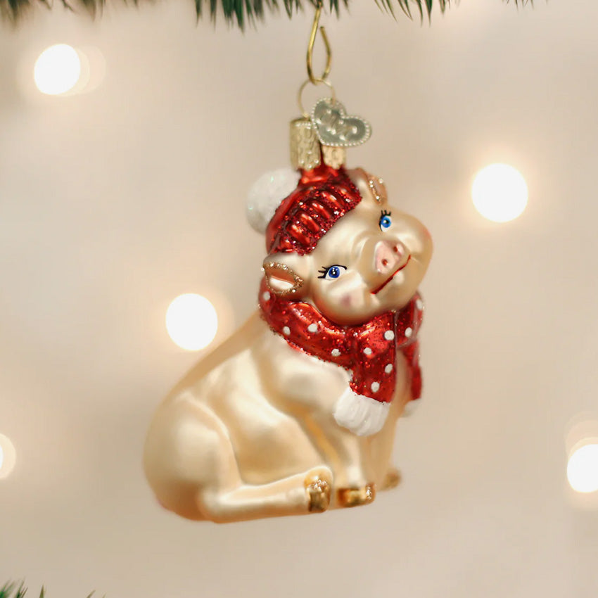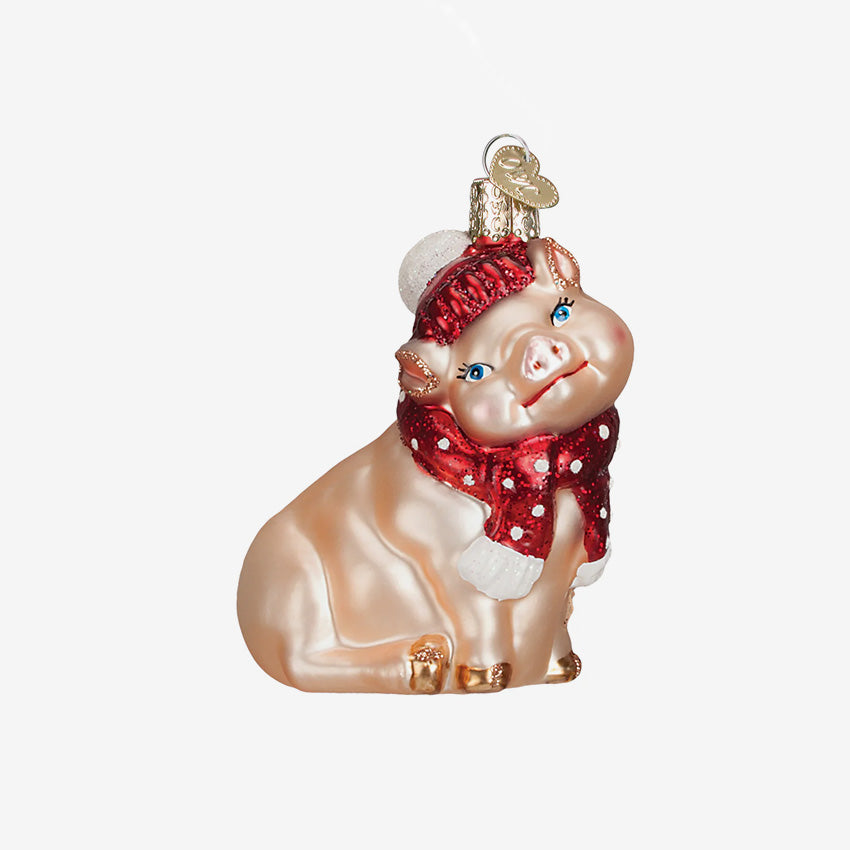 Old World Christmas | Blown Glass Ornament - Snowy Pig