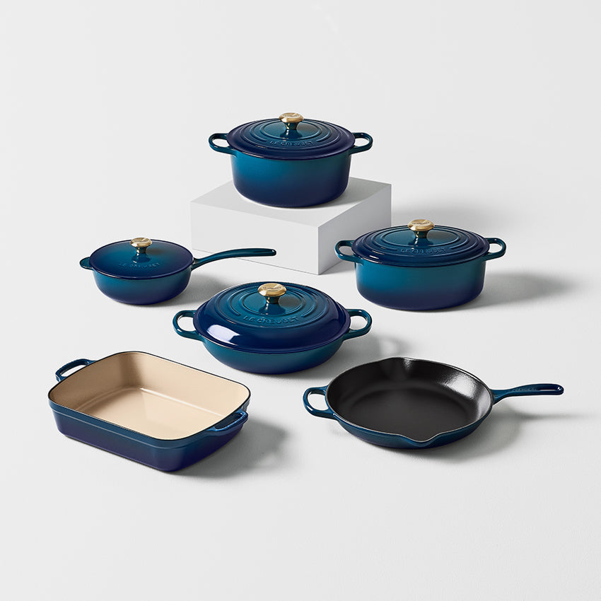 Découvrez des articles de cuisine Le Creuset en acier inoxydable, antiadhésif ou fonte émaillée colorés pour de délicieux repas faits maison. Découvrez des théières, tasses, casseroles, fours hollandais, presse française, bouilloires, tasses à café, beurriers, four à pain, mini cocotte, poêle en fonte, théière, tasse, poêle en fonte, marmite à riz, assiettes, porte-ustensiles, plat de cuisson, cocottes, moulins à sel et à poivre et ramequins, Le Creuset répondra à tous vos besoins en ustensiles de cuisine. Avec différentes tailles et formes telles que ronde, cœur, ovale et rectangulaire ou peu profonde, il peut accueillir toutes vos différentes recettes. Son esthétique distinctive avec des boutons élégants et des couleurs classiques Le Creuset comme l'artichaut, la myrtille, la cerise, la meringue, la sauge, le bleu sarcelle, l'huître, l'agave et son premier four en fonte émaillée couleur flamme sorti, et bien d'autres, vous pouvez ajouter de la couleur et du plaisir à votre cuisine. Aujourd'hui, les produits les plus populaires de Le Creuset sont en fonte émaillée, mais la marque propose également des ustensiles de cuisine et de table en acier inoxydable, en grès, en silicone, en revêtement antiadhésif renforcé, en textile et en aluminium anodisé dur, qui passent principalement au lave-vaisselle. En raison de leur qualité exceptionnelle, de leur compatibilité avec les plaques de cuisson à induction et de leurs couleurs vives, ces casseroles et poêles sont souvent transmises de génération en génération. Essayez une recette de pain maison avec un faitout , laissez infuser votre café préféré dans une presse française minimaliste ou servez le dîner dans de la vaisselle colorée avec Le Creuset, disponible chez Maison Lipari au Canada. Visitez nos magasins à Montréal, au Québec, ou magasinez en ligne sur maisonlipari.ca pour tout ce qui concerne Le Creuset.