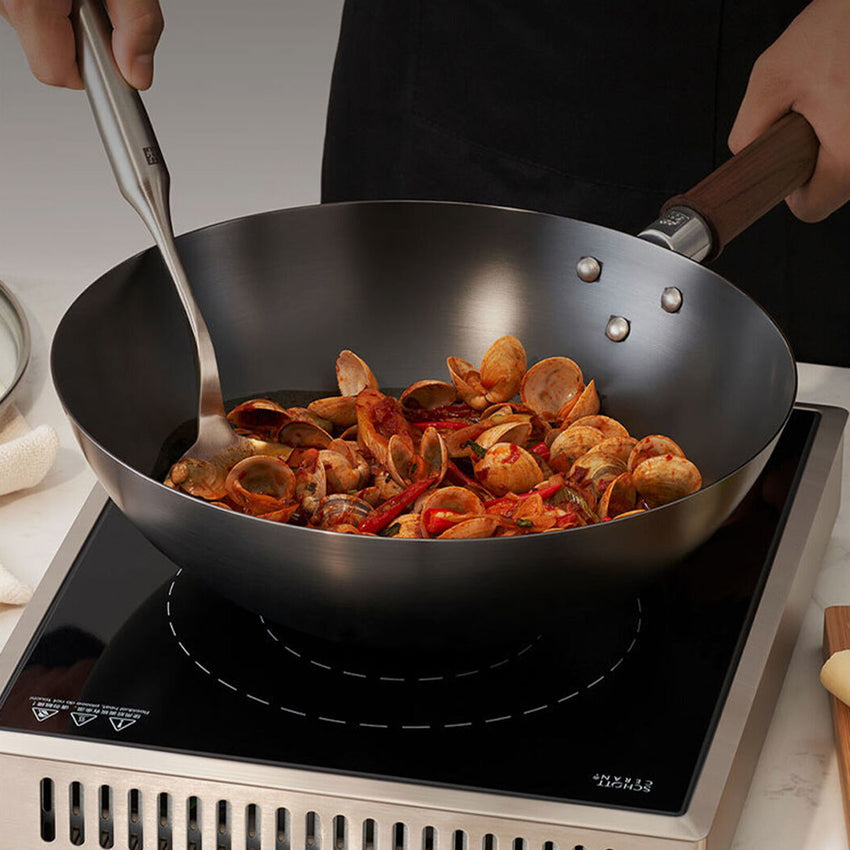 Maîtrisez l'art de la cuisson au wok avec ce wok professionnel de 30 cm en acier au carbone de Zwilling. Son design innovant comprend un fond plat spacieux et des bords élégamment incurvés, parfaits pour les sautés à feu vif et les fritures. Le couvercle en verre trempé inclus vous offre une visibilité optimale pendant la cuisson, tandis que les poignées ergonomiques en ébène assurent une prise en main sûre.
